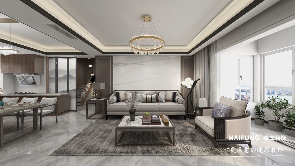 龙湖蓝湖郡142平方上叠现代新中式风格装修案例